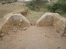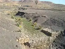 At Gemgema, May Be'ati and on other steep slopes, exclosures have been established; the dense vegetation largely contributes to enhanced infiltration, less flooding and better baseflow.[3] Physical conservation structures such as stone bunds[4][5] and check dams also intercept runoff.[6][7] In the May Be'ati exclosure, more than 1000 precise measurements were done in 2003 and 2004, using 15 runoff plots, where the volume of runoff was measured daily. The rock type (Antalo Limestone), slope gradient and slope aspect were the same, the only difference was the land management and vegetation density. Whereas in degraded rangeland, 35% of the rainfall flows directly away to the river (runoff coefficient), this happens only for 13.4% of the rain in a recent exclosure and 1.7% in an old exclosure. For sake of comparison, the adjacent May Be'ati church forest has a runoff coefficient of only 0.1%.[3]