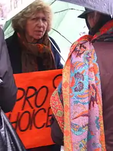 In 1990, Surduts founded and became president of the Coordination of Associations for the Right to Abortion and Contraception (French: Coordination des associations pour le droit à l'avortement et à la contraception (CADAC)) in response to repeated attacks on abortion clinics and attempts to prevent women from obtaining the legal procedures in hospitals.[3][7] CADAC pressed for and obtained passage of legislation in January 1993, of a law which made impeding the right to abortion a crime.[7] In 1995, fearing that conservatives might gain in the presidential election and protections might be rolled back, CADAC organized a demonstration to rally support for women's right to equal pay, reproductive control and equality.[3][8] Forty thousand protesters gathered and sparked a movement to stop roll backs in health and retirement benefits.[2][8] After the rally, the National Collective for the Rights of Women, was formed and Surduts, one of the founders, became spokeswoman for the umbrella organization.[2]
