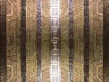 Historian Marjorie Ingle traces the history of this style to the Pan American Union Building by Paul Philippe Cret which incorporates numerous motifs drawn from the indigenous traditions of the Americas.[3] Maya and Mexica elements in the Pan American Union Building include the floor mosaics surrounding a central fountain (most of the motifs are copied directly from sculpture at Copan) and figures on lights flanking the entrance to the building. The building's Art Museum of the Americas contains numerous stoneware architectural details that are copied from Maya and Mexica art.