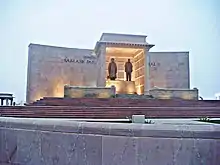 In her tenures as a Chief Minister, Mayawati commissioned the production and public display of several monuments[153] having parks, gallerias, museums,[154] memorials, murals[155] and statues representing Buddhist and Hindu, Dalit/OBC[156] icons like Gautama Buddha, Gadge Maharaj, Sant Ravidas, Sant Kabir, Narayana Guru, Jyotirao Phule, Chatrapati Shahuji Maharaj, Babasaheb Ambedkar, BSP party founder Kanshi Ram, and of herself.[157] She claims that the expenditure was required because the past governments did not show respect towards Dalit leaders, in whose memory nothing had ever been built.[158] She spent somewhere between ₹ 25 and 60 billion rupees (about US$500 million to US$1.3 billion) on projects in five parks and at memorials such as Dr. B.R. Ambedkar Samajik Parivartan Sthal and Manyavar Kanshiram Smarak Sthal, built in the name of B.R. Ambedkar, Ramabai Ambedkar, and Kanshi Ram in Lucknow between 2007 and 2009.[159][160][161] The Comptroller and Auditor General of India reported that ₹ 66 crore (about US$12 million) in excessive costs had been incurred on the construction of the memorials.[162] In February 2010 Mayawati's government approved a plan for a special police force to protect the statues, as she feared that her political opponents might demolish them.[163] In December 2010, her government received permission to continue part of the plan, namely maintenance and completion of Ambedkar Memorial Park.[161]