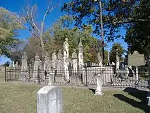 Mayfield is home to the Wooldridge Monuments, a series of historical monuments located in Maplewood Cemetery. They were built for Colonel Henry G. Wooldridge from 1892 until Wooldridge's death on May 30, 1899, to commemorate family members and other loved ones. The lot has been called "The Strange Procession That Never Moves."[24]