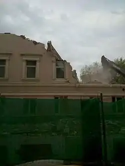 At the same time, Sobyanin continued the practice of destroying historical buildings for the sake of new construction, for which the previous Mayor Yury Luzhkov was heavily criticized. In 2013, the coordinator of the movement "Arhnadzor" Rustam Rakhmatullin noted that with the arrival of the Sobyanin team, the attitude to the preservation of monuments has changed only at the declarative level: "with Sobyanin, everything continues, but at a slower pace and in a somewhat paradoxical way, as the declarations have changed." Some decrease in the level of construction activity in the center of Moscow Rakhmatullin associated with the "long-term public demand" as well as the outflow of money due to the crisis. At the same time, he negatively noted the fact that public adviser Sobyanin was appointed the largest developer, owner of the construction Corporation "Barkli" Leonid Kazinets, known for offering to demolish the old city by 70% and placed on the city hall responsibility for the loss of, among other historical sites such as the Estate of Shakhovsky—Glebovs—Streshnevs, Volkonsky house, "Children's world" on Lubyanskaya square, the Cathedral mosque and buildings of the complex of the new Catherine hospital. The practice of demolition of valuable objects of the urban environment for new construction continued in the following years: in 2016, the constructivist Taganskaya Automatic Telephone Station was demolished, in May 2017 — the House of Neklyudova on Malaya Bronnaya street.[54][55][56][57][58]