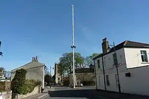 Holywood in County Down, Northern Ireland has a maypole situated at the crossroads of Main Street and Shore Road/Church Road in the center of the town. It is the only Maypole in Ireland. Although the origin is uncertain, it is thought that the original maypole dates from the 18th century, when a Dutch ship ran aground offshore. The latest maypole was damaged and removed after a storm in February 2021. The remains were removed by Ards and North Down Borough Council and a replacement pole was ordered.[28]