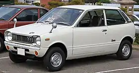The Mazda Chantez (chassis code KMAA) is a two-door kei car that was introduced by Mazda in July 1972. The Chantez had a longer wheelbase at 2,200 mm (86.6 in) than most of its competitors and featured the powerful two-stroke "AA" engine also seen in the Porter. With 35 PS (26 kW; 35 bhp), top speed was 115 km/h (71 mph) and the 400 m (0.2 mi) sprint was dispatched in a sprightly 20.6 seconds.[1] In more recent testing of a 1972 GF II, 0–100 km/h came up in 35.8 seconds.[2] The engine was installed longitudinally in the front of the vehicle powering the rear wheels, and the spare tire was installed next to the engine on the right side.[3][4]