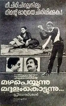 Mazha Peyyunnu Maddalam Kottunnu (transl.It is raining and Maddalam is playing) is a 1986 Indian Malayalam-language comedy film directed by Priyadarshan and written by Sreenivasan from a story by Jagadish. It stars an ensemble cast led by Mohanlal, Mukesh, Sreenivasan, Jagathi Sreekumar, Maniyanpilla Raju, Kuthiravattam Pappu and Lissy. Mammootty appears in a brief cameo role. The film was one of the highest-grossing Malayalam films of the year. It is now considered one of the best comedy films in Malayalam cinema.[1][2][3] The film was remade in Telugu as Saradaga Kasepu and in Tamil as Manandhal Mahadevan (1989).
