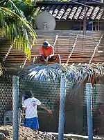 Guido Rocco is simply called “the Italian” or “the architect” and is well known and respected for building many of the eco-friendly cabins and other buildings here, which he calls “bio-architecture.” These structures consists mostly of palm fronds, adobe, bamboo, shells stones coconut shells and wood, designed to blend in with the landscape. He arrived in Mazunte in the late 1980s and has remained since. He and his family first arrived in the 1970s as visitors when there were no roads and Mazunte was accessible only by boat.[9]