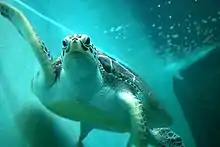 The modern Centro Mexicano de la Tortuga (Mexican National Turtle Center) was founded by the federal government in 1991 after the sea turtle trade was completely banned in the country.[13] The Centro Mexicano de la Tortuga is an aquarium and research center dedicated to turtles, especially sea turtles. The installation covers four hectares located in Mazunte right next to the beach,[1] near where the sea turtle slaughterhouse used to be.[6] The Center contains specimens of all marine turtles native to Mexico as well as six species of fresh water and two species of land turtles also found in the country. It contains tanks and other habitats in which a variety of turtle species can be seen. The buildings on the site are designed to be similar to those around it, both traditional and modern. Outdoor tanks hold turtle species of different ages and include both natural and artificial incubators for turtle eggs. The installation also contains a multipurpose room, gift shop and a cactus garden. Research objectives include developing techniques to manage, increase and preserve the turtle species of the country as well as promoting knowledge and ecological tourism based on turtles.[1] This facility receives 60,000 visitors a year.[2]
