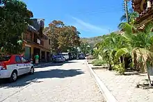Mazunte is a small village wedged between a wide, one km long beach and the Sierra Madre del Sur. Parallel to the beach is the Avenida Paseo del Mazunte, the main street, which connects the village with others nearby.[11] The area has mostly deciduous trees which drop leaves in the dry season. About twenty different species can be found here as well as a number of cactus and mangroves.[3] It is still mostly a rural village, with mornings filling with the sound of roosters crowing.[5] The village is somewhat larger than San Agustinillo, but the main distinction is that its architecture is based on the use of natural materials.[12] Mazunte has building codes that stipulate that all constructions must blend with already existent structures.[4] The community has strict rules about how, where and what to build in the community. Part of the reason for this is to discourage land speculation and over development.[7]
