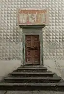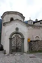 A 16th-century front door engraved with the figure of the Annunciation to Mary allows entering the Baptistery. The 7th-century plunge pool located inside the baptistery is the most ancient in Valtellina. Frescoes from the 15th century represent the Trinity, Saint Barbara, Saint Stephen and John the Baptist. [8]