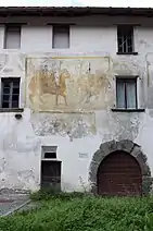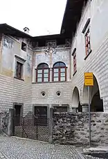 The Venosta palace is easily recognizable for the mighty tower with the function of dovecote that most likely had a symbolic connotation linked to the power and dominion of the Venosta family, embodied by the flight of doves over the territory.[8]