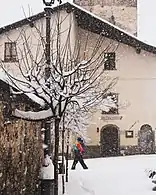 The little stone mountain hut visible a few metres above the church is in reality an older church: the semi-circular apse on the back has maintained its structure and on the façade we can still admire a beautiful fresco from the artist Valorsa.[8]