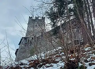 In the 13th century, the Venosta family built the "castle of Mazzo", of which today only the tower remains.[8] The castle was part of a fortification system connecting the castles of Grosio and Tovo that allowed to control the movement of merchants and armies to and from the German-speaking countries, and the two entrances to Bormio (namely the Val Grosina and Valdisotto).[4]