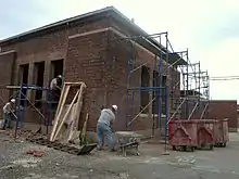 The LPC designated the McCarren Play Center as a landmark in 2007.[57][58] During early 2007, many in the community expressed a preference that the pool be returned to its historic use as an active recreational facility, with a smaller space dedicated to cultural and concert events. In April 2007, New York City mayor Michael Bloomberg announced that a $50 million reconstruction of the pool would move forward, funded as part of the City's PlaNYC long-term planning initiative.[59][60] The site continued to be used as a large concert venue until 2008.[61][62] The plan presented to the LPC in September 2008 called for a performance space to be included alongside a new pool, an ice-skating rink, a cafe, a community center, and an exhibition center.[63] The LPC approved the renovation plan on September 9, 2008.[64] Final design renderings were completed in February 2009,[65] and renovation work began that December.[66] The work included removing graffiti, repairing the bathhouse and pool surfaces, and restoring the bathhouse.[19] The pool reopened on June 28, 2012.[11][67] The project was conducted by Rogers Marvel Architects and cost $50 million.[11][18]