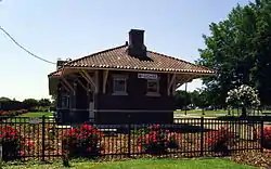 The Missouri Pacific Railroad Depot-McGehee is a historic railroad station on Railroad Street in McGehee, Arkansas. The single story brick building was built c. 1910 by the Missouri Pacific Railroad in its distinctive Mediterranean/Italianate style. The building is of particular importance in McGehee because the town is located where it is due to the company's decision to locate the station here. The station has a basic cruciform plan, an elongated rectangle with a projecting telegrapher's station on one side, and a matching projection on the other. It has a red tile roof, with a spreading cornice supported by Italianate brackets.[2]