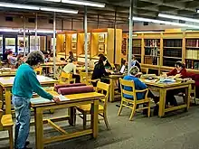 The current seven-storey reinforced concrete structure was built between 1967 and 1969 and designed by the firm Dobush, Stewart and Bourke, who also designed McGill's Stewart Biological Sciences and Ernest Rutherford Physics Buildings, and worked on design for the city's Cadillac Metro station. The exterior consist of identical precast concrete panels that are attached to a reinforced concrete frame. It is attached to the more modern Redpath library extension by a bridge walkway. The main entrance to McLennan library is now at the south end of the concrete terraced due to the Redpath library entrance being closed after the terrace renovations ended in January 2014, due to a lack of funding by McGill's administration.[3] All traffic between floors is controlled by the central stairwell and elevator core. The sixth floor houses the McGill University Archives and the fourth floor is dedicated to McGill Rare Books and Special Collections.