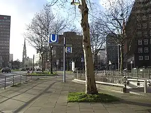 The underground station Meßberg is located in the city centre of Hamburg, Germany in the Altstadt quarter. It is served by the rapid transit trains of the line U1 of the Hamburg U-Bahn. The station is managed by the Hamburger Hochbahn, the operator of the underground railway.