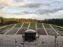 The Mežaparks Great Bandstand (Latvian: Mežaparka Lielā estrāde), also called the Song Festival Bandstand, Open-Air Stage (Latvian: Dziesmu svētku estrāde), is a large open-air bandstand in Mežaparks park in the Mežaparks neighbourhood of Riga, the capital of Latvia. The bandstand has added cultural value to Riga since 1955, when the Latvian Song and Dance Festival was moved to this venue.[1]