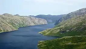 The Mealy Mountains encompass five of Labrador's ten provincial ecoregions, including coastal barrens, high sub arctic tundra, high boreal forest, mid boreal forest, and string bog.[2] The mountain range reach heights of more than 1,000 m (3,281 ft), with the highest peak being more than 1,180 m (3,871 ft).[1]