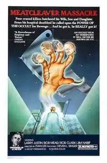 Meatcleaver Massacre is a 1977 American slasher film directed by Keith Burns and Ed Wood, credited to the pseudonymous Evan Lee. It follows a college professor who, after several of his disgruntled students murder his family and leave him permanently disabled, invokes a Gaelic demon to enact revenge.