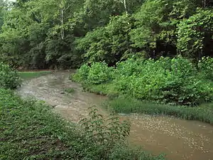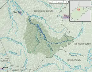 The Meathouse Fork is a tributary of Middle Island Creek, 19.7 miles (31.7 km) long,[5] in north-central West Virginia in the United States. Via Middle Island Creek and the Ohio River, it is part of the watershed of the Mississippi River, draining an area of 64.6 square miles (167 km2)[6] in a rural region on the unglaciated portion of the Allegheny Plateau.