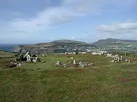 'Mull Hill (Manx: Cronk Meayll also called Meayll Hill or The Mull) is a small hill in the exclave of Rushen Parish at the southern end of the Isle of Man, just outside the village of Cregneash. It is the site of a chambered cairn called Mull Circle or Meayll Circle. Near the summit of the hill also lie the remains of a World War II Chain Home Low RDF station.