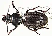 Mecodema aberrans is a medium-sized (14.6–19.5 mm length, 5.3–6.5 mm width) ground beetle endemic to the South Island, New Zealand. This species is within the curvidens group[1] and is one of three species that is a braided-river ecotype. It occurs in Otago and Canterbury.[2]