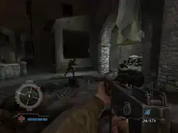 Medal of Honor: Airborne is a first-person shooter video game, developed by EA Los Angeles, and released worldwide on mobile phones in August 2007,[1] on Microsoft Windows and Xbox 360 in September 2007, and on PlayStation 3 in November 2007.[2] It is the 11th installment of the Medal of Honor series, and uses a modified version of Unreal Engine 3,[3] In the game's single-player mode, players assume the role of an American paratrooper in the US 82nd Airborne Division who is airdropped with his squadrons and fights against hostile forces across six large missions that take place during the latter half of the European theater of World War II,[4] while in its online multiplayer mode, players can choose to fight as Allied soldiers that parachute into the battlefield, or as Axis soldiers who defend on the ground.