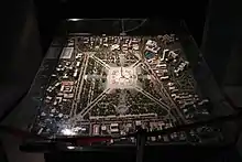 In 1954, President Sukarno launched the idea of erecting a "National Monument" at the center of Merdeka Square. Sukarno desired that the Indonesian people and the young independent nation had something to be proud of, a monument to commemorate the struggle for independence.[12] His ambition was to make the Monas the tallest building in Jakarta, higher than Borobudur and larger than the Eiffel Tower.[13] A design competition was held in 1956, followed by a second competition in 1960, however the President was not satisfied by the design entries, and no winner was announced. Instead Sukarno — who had previously studied architecture — asked architects to refine sketches made by himself. The design of the monument was eventually resulted from the work of architect Soedarsono. Sukarno's layout for Merdeka Square was based on a plan initially developed in 1892 with diagonal streets radiating from the monument.[13]