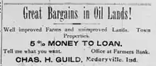 Medaryville had an oil rush at the turn of the 20th century. Many wells were put in just west of town, and a refinery was built at the little town of Asphaltum. The oil pockets were of limited production, however, and the oil of poor quality. The enterprise was quickly abandoned. Attempts to rekindle the boom occurred in the 1950s and again in the 1980s, without gaining traction.