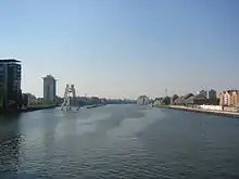 On 13 July 2008, a referendum was held against the plans for Mediaspree,[38] which called for a 50-metre-wide (160 ft) strip of free space and the abandonment of the construction of both high-rises and the planned automobile bridge over the Spree. The required number of supporting signatures was reached five months ahead of schedule and was submitted to the borough of Friedrichshain-Kreuzberg on 4 March 2008. The following referendum drew a voter turnout of 19.1%, which was well over the required threshold of 15%. A clear majority (87%) supported the alternative proposals of the Mediaspree versenken initiative.[39] According to the organization Mehr Demokratie (More Democracy), this was the most successful Berlin citizens' movement to date.[40] The result is not binding, however. While the district associations for the SPD and the Green Party subsequently demanded that the citizens' wishes be carried out as soon as possible, the Urban Development Senator, Ingeborg Junge-Reyer assured investors that she would protect the Mediaspree plans.