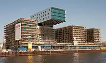 Among the first development projects to be completed in the Mediaspree-region after the fall of the Berlin Wall were: the Treptowers (de), the ver.di headquarters at the Schillingbrücke bridge, as well as the renovation of the Eierkühlhaus into the German headquarters for Universal Music, which received 10 Million Euros worth of sponsorship funding from the Senate and was completed in the middle of 2002. In early 2004, there followed the similarly subsidized settlement of MTV Networks Germany in a former warehouse at Osthafen. VIVA and VIVA Plus followed in 2005, due to their acquisition by MTV.[4] The O₂ World arena was constructed by the Anschutz Entertainment Group on the grounds of the former Ostgüterbahnhof (de) (which was the site of the legendary nightclub Ostgut from 1998 to 2003, predecessor to Berghain) and opened on 10 September 2008, accompanied by protests.[5]