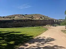 Medicine Lodge State Archeological Site is a Wyoming state park that interprets the Medicine Lodge Creek Site, a prehistoric Native American archeological site near Hyattville, Wyoming. It is administered by the Wyoming Division of State Parks and Historic Sites. The site is at the base of a steep limestone outcropping near the point where the dry and running portions of Medicine Lodge Creek join. for a protected location with ready access to water. The site includes petroglyphs and pictographs on the rock face. Excavations starting in the 1970s have found twelve levels of habitation in 10.5 feet of stratum, ranging from historic times to 8300 years before the present. The site comprises a portion of the former Wickwire Ranch, which was purchased by the state in 1972 and became to Medicine Lodge Wildlife Habitat Management Area of 12,000 acres (4,900 ha). The archeological site was designated in 1973.[2][3][4] The site is managed as a state park, with campgrounds and a visitor center. It was added to the National Register of Historic Places on July 5, 1973.[1]