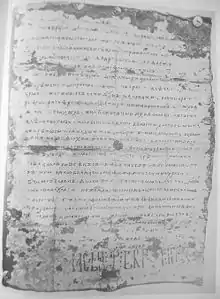 Although no other charters have been discovered in the original, there is direct evidence of the existence of other charters as well. For example, a charter of Ivan Alexander given to the Venetian doge Andrea Dandolo in Nikopol on 4 October 1352 is kept in a Venetian translation in the archives of Venice. Ivan Alexander's signature has been preserved in its original form in Cyrillic.[2]