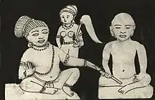 The Vaishnava Bhakti (devotion) influence on Kannada literature was acute from the time of Vijayanagara Empire, a direct impact of the dvaita philosophy propounded by Madhwacharya of Udupi in the 13th century.[47] Over 150 well-known bhakti saints who wrote thousands of compositions are known. These compositions are broadly classified as general compositions, kavya (poetic compositions) and tatva (philosophical compositions). General compositions are further classified as keertanas, ughabhogas, suladis, vruttanama, dandaka, tripadi, pattadi, sangathya and ragale.[48] The period between the 14th century to 16th century produced the first wave of devotional literature called the Haridasa sahitya (literature). Vyasatirtha who composed songs in praise of Krishna, Purandara Dasa whose compositions marked his devotion to Purandara Vittala (a form of Vishnu) and Kanaka Dasa who praised Adikeshava (a form of Krishna) in his poems were the great trinity of Vaishnava composers in Kannada.[49] The contribution of Purandara Dasa to Carnatic music is immeasurable, and he is called the "Karnataka sangeeta pitamaha" (Father of Carnatic Music). Historians propose the number of his compositions were as many as 75,000–475,000 songs in Kannada and Sanskrit language, though only few hundreds are available today.[50] He codified and consolidated the school of Carnatic music by evolving several steps like sarali, jantai, thattu varisai, alankara and geetham and laid down a framework for imparting formal training in this art form.[51] He became an inspiration to later day Carnatic composers.[52][53][54]