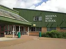 Medina High School was founded in 1976 on the current site. By the 1990s, the school suffered from a falling roll and finances, with Richard Williams brought in as head in 2002, the fifth head in 2 years. In 2004, blazers were reintroduced to replace polo and sweatshirts, with procedures from a number of schools include troubled school in Birmingham introduces to help discipline.[1] In 2008, the school was deemed "Outstanding" in an Ofsted inspection, something they have failed to achieve since.[2]