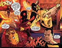 When Nightwing, Superboy, and Wonder Girl attack Luthor's base, they free all the captive heroes, including Power Girl and Black Adam, who are then confronted by the Psycho-Pirate. A coldly furious Black Adam proceeds to battle him head on. Although Hayden desperately attempts to use his powers on Adam, he simply ignores him and proceeds to gouge out the Psycho-Pirate's eyes and pushes the Medusa Mask straight through his head, killing him instantly.