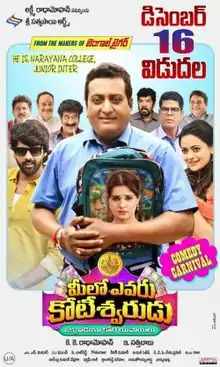 Meelo Evaru Koteswarudu (English: Who is the millionaire among you all?)[3] is a Telugu Film directed by E. Satti Babu and produced by K. K. Radhamohan starring Naveen Chandra,[4] Shruti Sodhi, Murali Sharma, Prudhviraj and Saloni Aswani among others. The film was released on December 16, 2016.