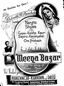 Meena Bazaar is a 1950 Bollywood film directed by Ravindra Dave starring Nargis and Shyam.[1][2]