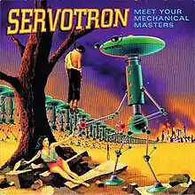 Meet Your Mechanical Masters was Servotron's debut release. It was released in 1995 on Sympathy for the Record Industry (cited on the sleeve as Sympathy for the Machines). This single was released on purple vinyl and black vinyl. It was re-released as a silver circuit board picture disc as the "Super Expensive Ultra Limited Totally Bitchen' Silver Disc". "People Mover" is a song about vehicles at the Atlanta airport.