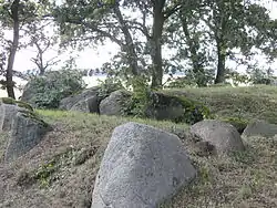 Disarticulated bones from up to twenty individuals have been discovered in excavated dolmens.[1] Presumably, the dead were first laid down in the open, and their bones were buried in the dolmens once the body was skeletonized.[4] Few dolmens contain only TRB finds, as most were also used by the contemporary and subsequent Globular Amphora and Single Grave cultures,[1] and some remained in use until the Bronze Age.[1][4] The bearers of the Globular Amphora culture removed and demolished skeletons and items from previous burials before reusing the tombs for their own dead.[1] When the tombs ceased to function as burial sites for the TRB and Globular Amphora cultures, they were filled with earth, with the exception of some tombs on Rügen where items from Bronze Age burials were found on the ground of the Neolithic chamber, or within the fill.[11]