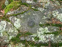 Some megaliths have cup-marks (Näpfchen) on them, which Holtorf describes as "simple, roughly hemispherical depressions of about 2–10 cm diameter and up to 3 cm depth."[15] The origin and purpose of the cup-marks is uncertain.[15] Their distribution corresponds with the distribution of the dolmens, and they are found on undisturbed dolmens as well as stones derived from destroyed megalith sites.[15]