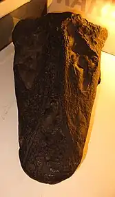 Megalocephalus pachycephalus is one of the most common large amphibians from the Carboniferous of Britain, and is known from several sites in England, Scotland, and Ireland. The first known fossils of the genus were cranial fragments which were misattributed to Rhizodus jaw bones upon their discovery in 1864. These fragments, and many subsequent discoveries, were recovered from a quarry near Newsham, Northumberland. Other Megalocephalus fossils found in the 1860s had been referred to other large amphibians, namely Pteroplax and Anthracosaurus. Two well-preserved skulls and associated jaw bones were found in Newsham in 1870 and 1871, though these were also mistakenly referred to a pre-existing genus, Loxomma. In 1873, Thomas P. Barkas named a pair of new genera for two more Newsham skulls. One was described as a supposed new reptile, Orthosaurus pachycephalus, while the other was given the name Megalocephalus macromma.[3]