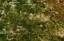 The Megalopoli Mine is a large lignite and coal open-pit mine owned by the Public Power Corporation of Greece that began in the early-1970s after the completion of the Megalopoli Power Plant. It mined approximately 40 km² or 4,000 ha of which 25 to 30 km² or 2,500 to 3,000 ha of land have been mined with a timespan of 37 years, it is the largest mine in the Peloponnese and Southern Greece and is ranked near Amyntaio and after Ptolemaida.
