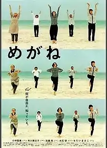 Megane (めがね, "Glasses") is a 2007 Japanese comedy film written and directed by Naoko Ogigami. Set on an unnamed Japanese island, the film tells the story of a vacationing university professor who comes in contact with several eccentric local inhabitants. It serves as a follow-up to Ogigami's 2006 film Kamome Shokudo, and features two of the same actors.[3][4] It was featured at several film festivals including the Sundance Film Festival.[5] During production, Ogigami decided the title of the movie after an impromptu realization that all of the characters in the film wore glasses.[6]