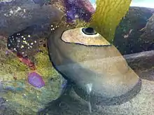 Megathura crenulata is a northeastern Pacific Ocean species of limpet in the family Fissurellidae[1] known commonly as the great keyhole limpet[2] or giant keyhole limpet.[3] Megathura is a monotypic genus; in other words, this is the only species in that genus. This species occurs along the rocky coast of western North America, its distribution extending from Southern California to the Baja California peninsula in Mexico. It is found in the intertidal zone and in the sea up to a depth of 33 meters.[3]