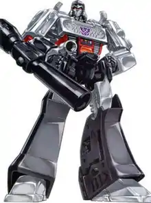 Megatron is a fictional character and the main antagonist of the Transformers media franchise produced by American toy company Hasbro and Japanese toy company Takara Tomy. Megatron is the cruel and tyrannical leader of the Decepticons, a faction of sentient, war-mongering robotic lifeforms that seeks to conquer their home planet of Cybertron and the rest of the known universe. He serves as the archenemy of Optimus Prime, the leader of the rival Autobot faction. As with all Cybertronians, Megatron has the ability to transform between his robot form and various vehicles or weapons. His alternate modes have ranged from a Walther P38 handgun, a particle-beam weapon, a telescopic laser cannon, and a Cybertronian jet, depending on which continuity he is depicted in.
