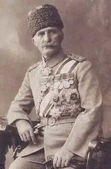 Upon the outbreak of the First Balkan War Esad was immediately detached from his divisional command and placed in charge of the newly activated independent Yanya Corps, tasked with defending the well-fortified city and the wider region of Epirus.[2] Efficiently organising his limited resources he pursued an active defence Esad succeeded in defending Yanya for three months against the Greek Army with constant counter-attacks, before being finally forced to capitulate after the Battle of Bizani on 4–6 March 1913.[4][5][2]