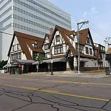 The Seven Gables Building at 26 Meramec Avenue in downtown Clayton was developed by Meier and Comfort and designed by their frequent partner Daniel H. Mullen. It was built in 1926 for the cost of $60,000.[6] The Tudor Revival architectural style was unusual for commercial buildings at the time. Both Meier and Comfort and Daniel Mullen kept their offices in the building. Today, it serves as a hotel [7] and is on the National Register of Historic Places.[8]