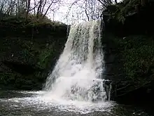 The works and the foundry were not the only industries that Auchengree once hosted. The remains of two mills can be found if the Powgree Burn is followed upstream from Auchengree Bridge into Kersland Glen. The downstream of the two, Braehead Mill was once a saw mill that continued working until at least 1912. Further upstream at Braehead Falls, Tianna Falls or Linn Spout (the name of the waterfall varies by which source is consulted) there is another, better known, Linn or Lynn Spout on the Caaf Water, again in Dalry Parish) are the ruins of the Kersland Lint Mill, one of many small mills for flax processing that existed briefly in the nineteenth century. Just below the falls is a third old flour mill's ruins and the Kersland Farm lies above, once the miller's dwelling and owned at one time by the Spier family of Marshalland.