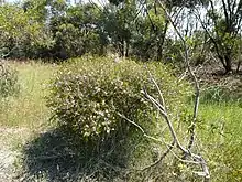 Melaleuca camptoclada is a shrub in the myrtle family, Myrtaceae and is endemic to the south-west of Western Australia. It was first described in 1990 in a review of the genus Melaleuca when the species Melaleuca laxiflora at that time was found to comprise ten species. Two of those species were new - M. camptoclada and M. ctenoides.[2]